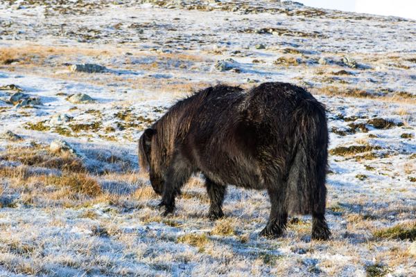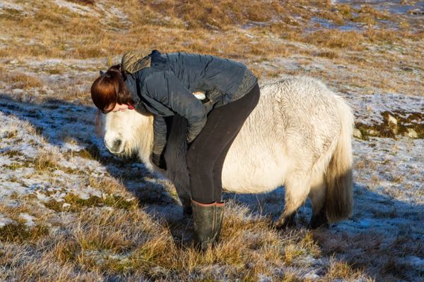 We left them to it – digging away in the Shetland winter sunshine. The scenery may look pretty but the ground is frozen.