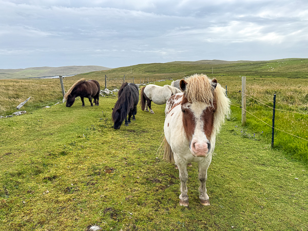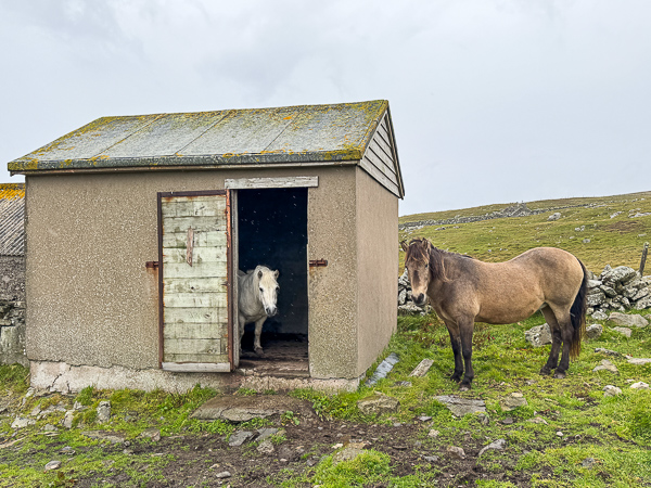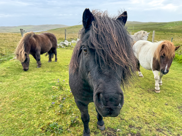 So I clambered over the fence into the hill field where the Shetland ponies live and decided that, as they had done so well in the storm, they deserved a small treat.