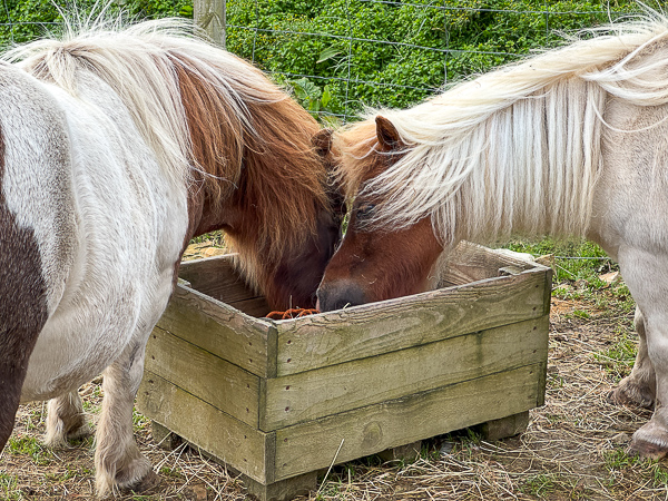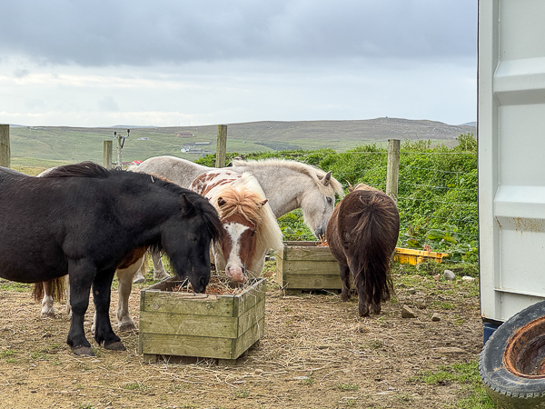 Meanwhile, Gussie and Dahlia had come inside when I went to feed the Shetland ponies. They made a quick bee-line for the shed where breakfast was being served.