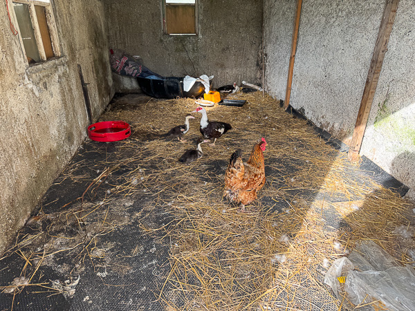 In the last of the quickly fading light of early afternoon (now around 2.30 p.m.; how pathetic is that?), Skippy and I unloaded the car and I made bedding a bit fresher for the chucks and ducks and the sheep too.