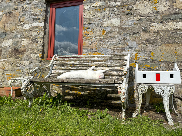 Meanwhile, in a different garden, King of his Castle was Monster on the much-needing-paint/restoration garden seat.