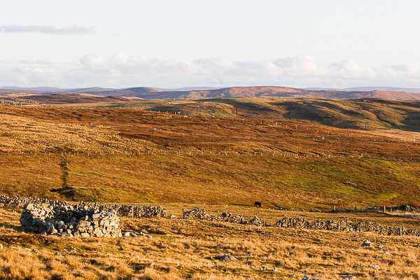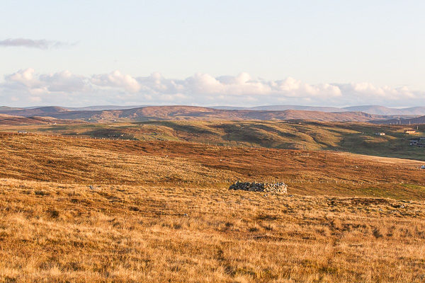 The circular enclosures are called planticrubs (From the Shetland Dictionary – noun – a small circular dry-stone enclosure for growing cabbage plants. They are sometimes used for sheep and are just called crö then. I am not sure if these are for plants or sheep as, although they are in the hill, they are relatively near my croft.