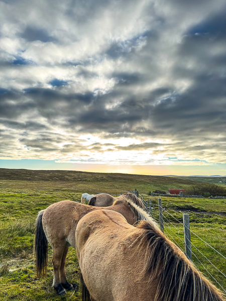 I like Monster’s routine; I guess this is his perfect day. Gorgeous pictures, as always, of the Shetland Crew. Oh, to hear the waves coming in! Just heavenly! I know that the Northern lights with cloud cover would be disappointing, but seeing the contrast between the gorgeous lights and the dense, dark clouds mad the pictures very dramatic & still exquisite.