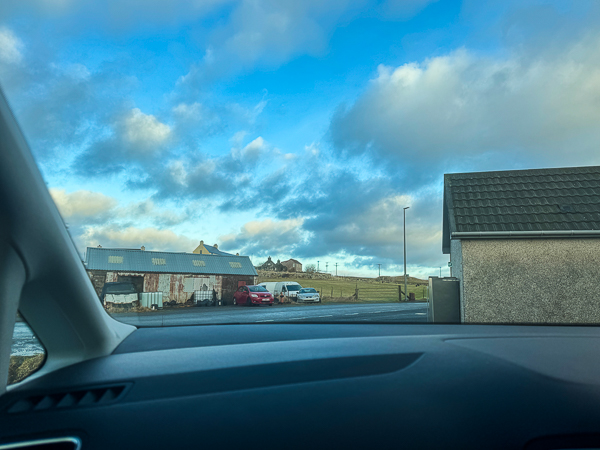So, Monika collected me at 10 o’clock, when we had all finished our crofting chores, and drove me to town.