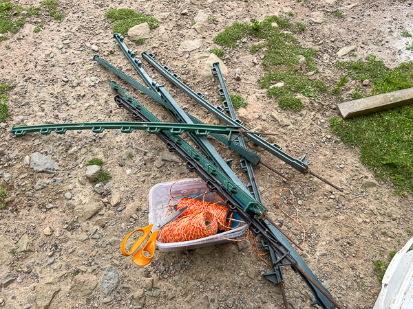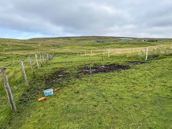 So, after feeding everyone their breakfast, I shut the Shetland ponies in their paddock and took my trusty fencing kit out to the boggy bit.