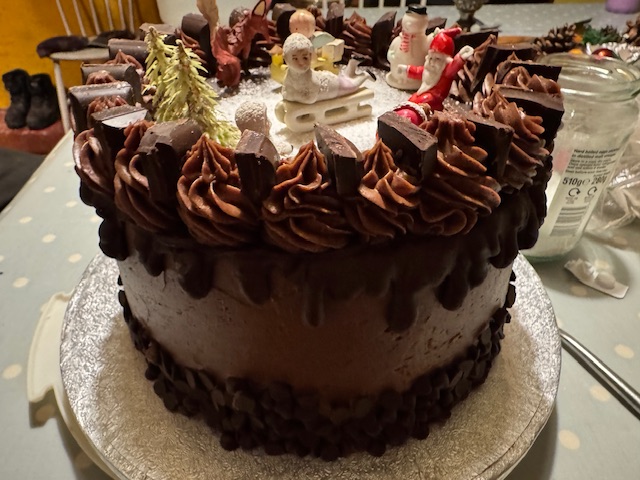 Floss usually makes our Yule log but she was working right up to Christmas Day. So I commissioned this from our local talented young baker.