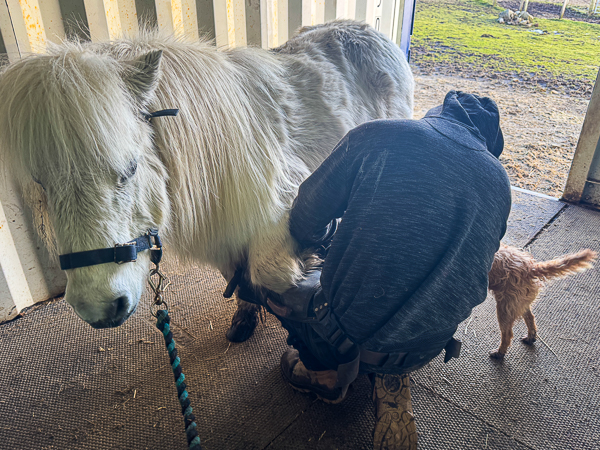 Flossie and I had set this morning aside for the farrier and I managed to get all the sheep into their day-time field, all except Lambie who was busy finding himself somewhere else (he went out later to join the others or wander about unloved by himself).