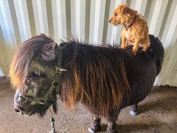 She even did a spot of “riding” too, although she is not nearly as proficient as my previous Patterdale terrier, BeAnne, who could actually sit to walk, trot and even a little canter.