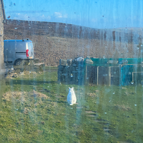 (the black marks on Monster’s head and tips of ears are car/van oil. I think he has been busy cutting brakes – I told you this was a weird sort of day)