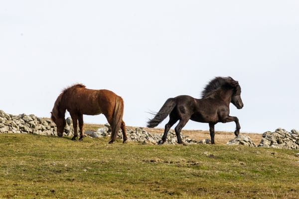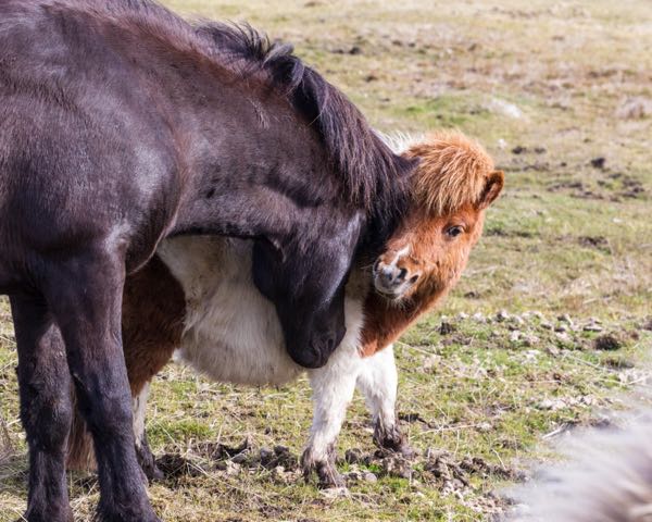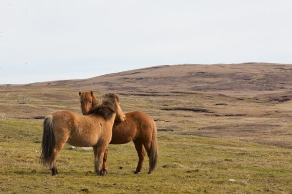 Hetja is wide as a barn. She is Hjalti’s mother and in another field waiting to give birth. No mares in the all-boys-together field!
