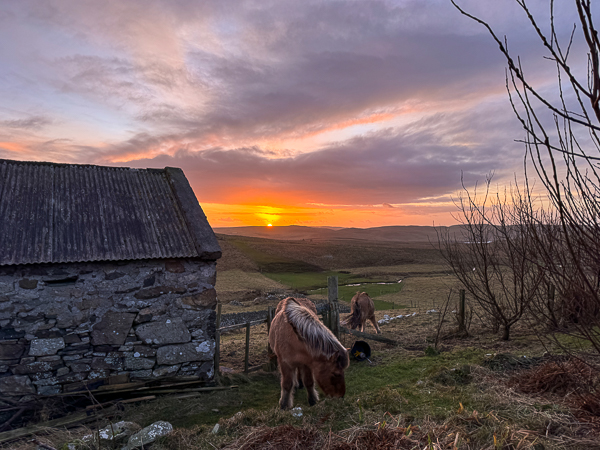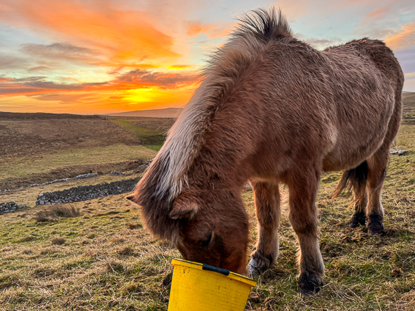 While the sun rose, I put Haakon in the garden (shh, don’t tell OH) and took off his sugardine poultice that the farrier had put on yesterday (just to get out any final bit of infection).