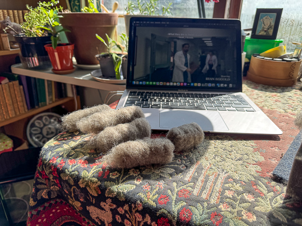 While the sun rose, I put Haakon in the garden (shh, don’t tell OH) and took off his sugardine poultice that the farrier had put on yesterday (just to get out any final bit of infection).