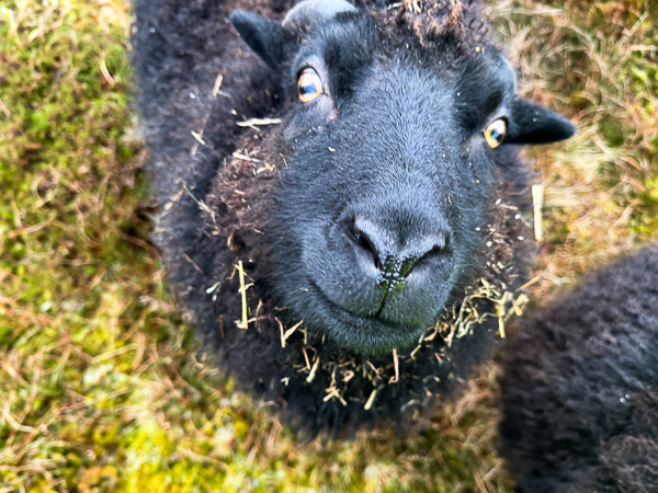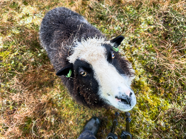 And not-so-small Gussie who is probably now my biggest sheep. He maintains his figure by travelling with food in case of emergencies. Somewhat like a woolly St Bernard dog.