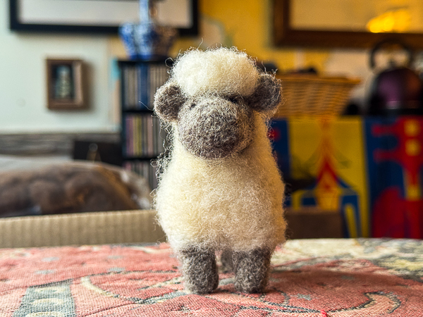 Later this afternoon, I decided I would have a stab (see what I did there, geddit?) at making one of my hand-felted sheep out of Shetland wool.