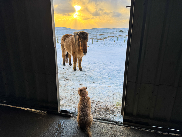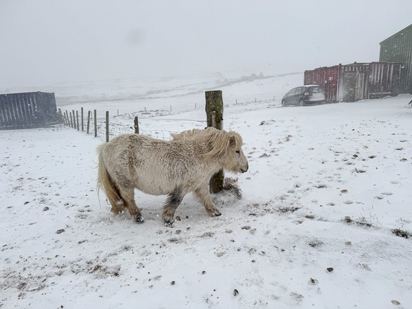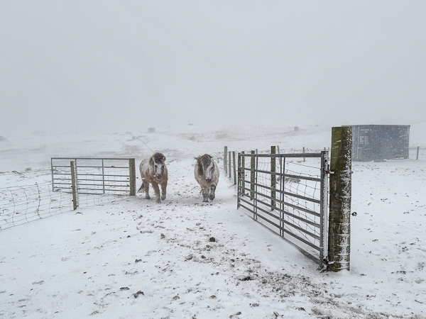 Not even two hours later, we had a huge blizzard. It was vile. So Flossie opened the big shed doors, and I opened the gate. All the horses and ponies came in as fast as they could.