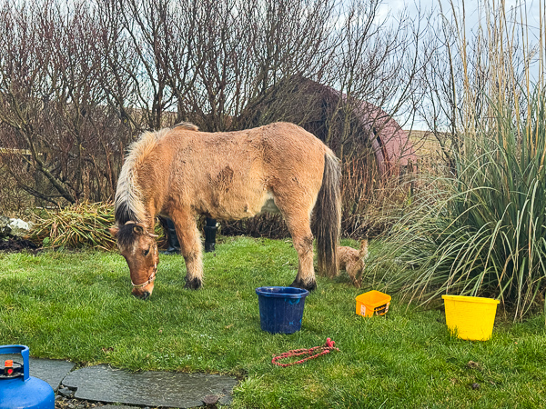 Feeling that I was getting into a huge muddle with this, I went and stood outside trying to find a halfway decent mobile signal in the drizzle while phoning NAF Equine for more information and some guidance. They were very sympathetic to Haakon’s situation and I came home with biotin in liquid form (Pro Hoof), a General Purpose Supplement and some TurmerAid (Lambie and friends had finished my supply).