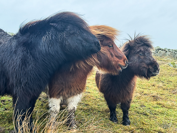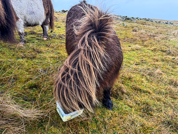 So I clambered over the fence into the hill field where the Shetland ponies live and decided that, as they had done so well in the storm, they deserved a small treat.