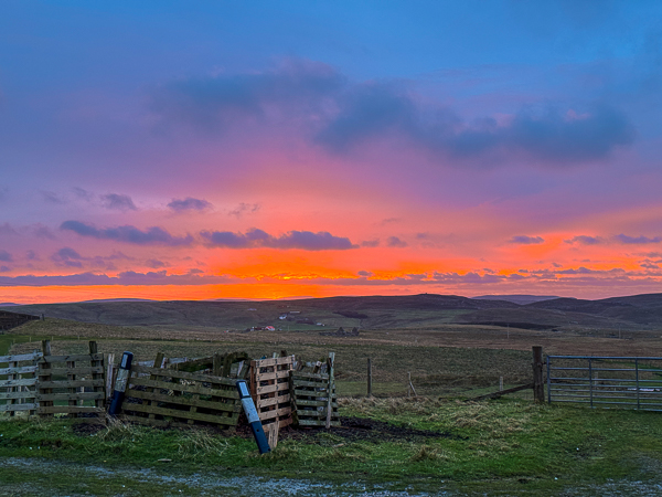 Later, on the dog walk, I found Maggie who was in the wrong field (just why?) I brought her home and she very gratefully rejoined the others. Dahlia and Gussie were at the furthest point of the field possibly gazing at a newly arrived hill-ram. I gave them the breakfast I had brought so I knew they were moving and eating fine. Oh, yes and then it started to rain and I got home totally soaked through to the skin.
