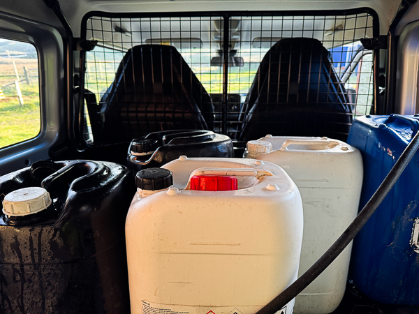 I used “the Eggbox” and in full four-wheel drive we trundled over the hill backwards and forwards four times with the very full and heavy water containers.