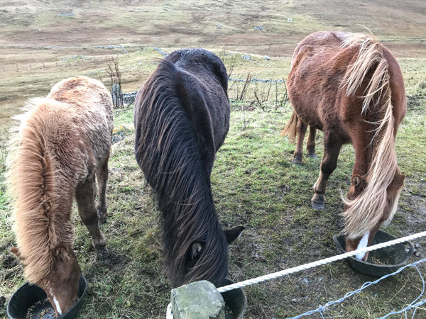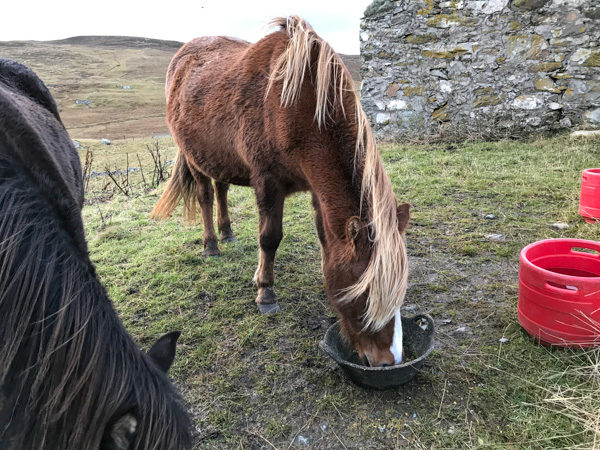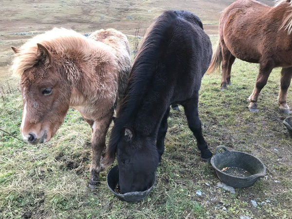 Today, after finishing my work, I was on horse/pony checking. I gave the ladies their daily grub. They have created their own routine.