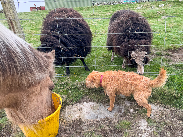 Pepper is now off house-arrest due to her poorly paw and is allowed to come with me on my crofting duties, or on dog-walks but only on a lead.  She is making up for lost eating/clearing up time but I am glad she is getting better.