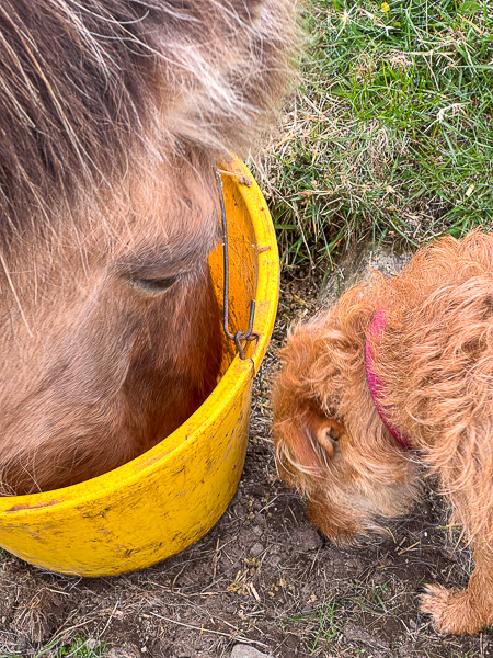 After their breakfast, Dahlia and Gussie also followed me down to where I was feeding the old horses and ponies.
