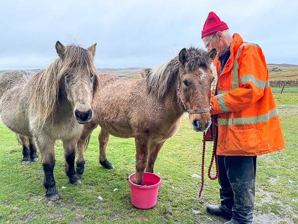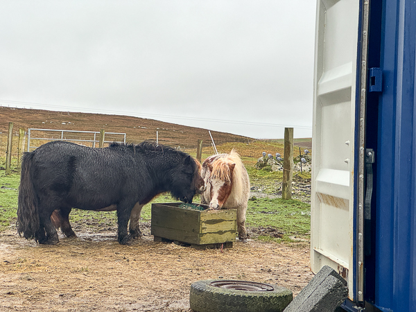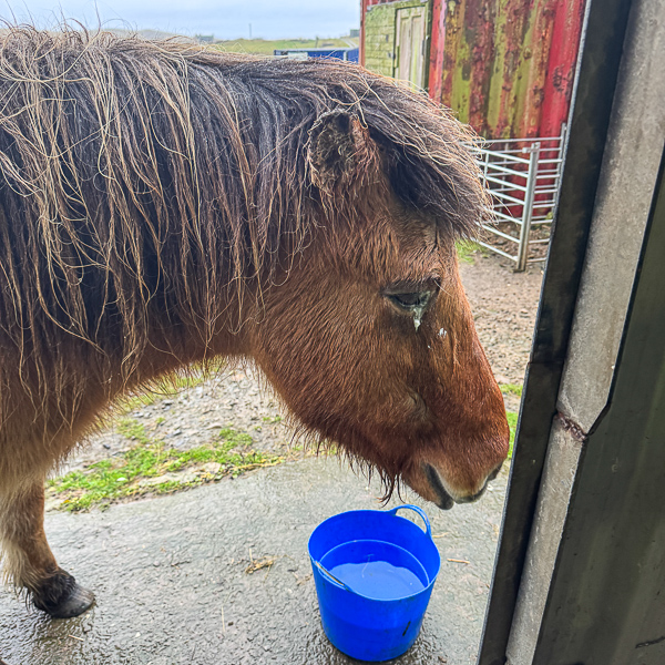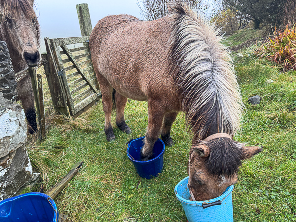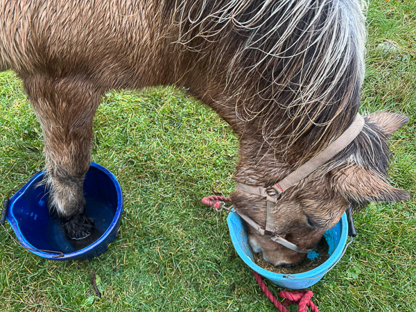 My last job this afternoon was to give Haakon a bucket of his favourite food, mixed with Bosmerix (boswellia supplement), while soaking his hoof and spraying it with antibiotic spray.  He was such a good boy.  Kolka is furious at all the food and attention he’s getting.