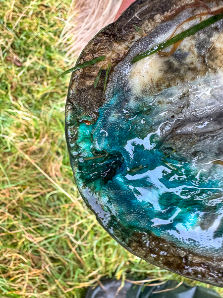 When I looked again at Haakon’s poorly hoof, I found a deep stone chip embedded at the front.  It left a hole when I eventually prised it out.