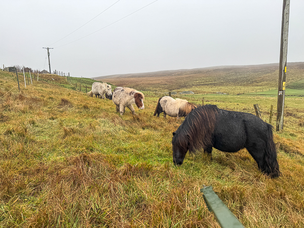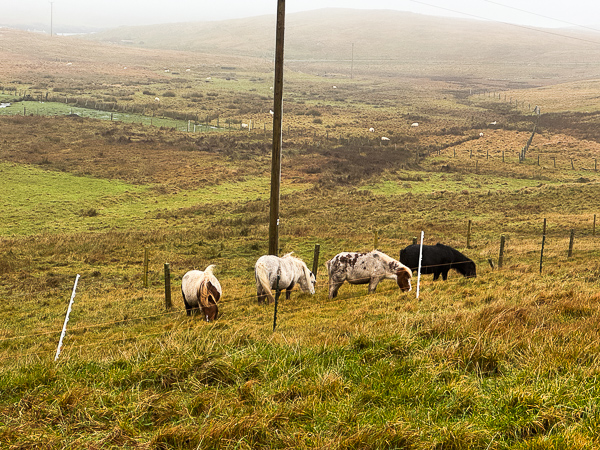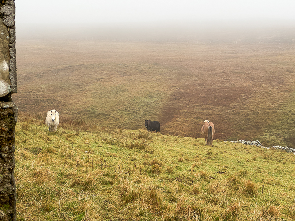 Then over the hill to feed the others and I noticed Haakon could barely walk.  He was hobbling. So I led him home with the others following.