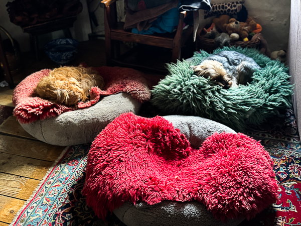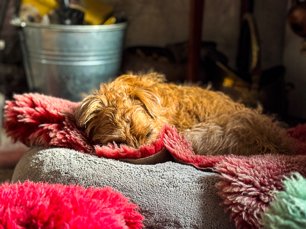 (but the sun did make an appearance today and there was lovely blue sky too. And Monster got “The Bed”!)