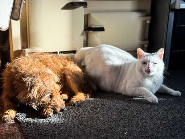 I wasn’t quick enough in catching Pepper and Monster sitting together – quite a rarity these days. Monster was just on his way out as I took this.