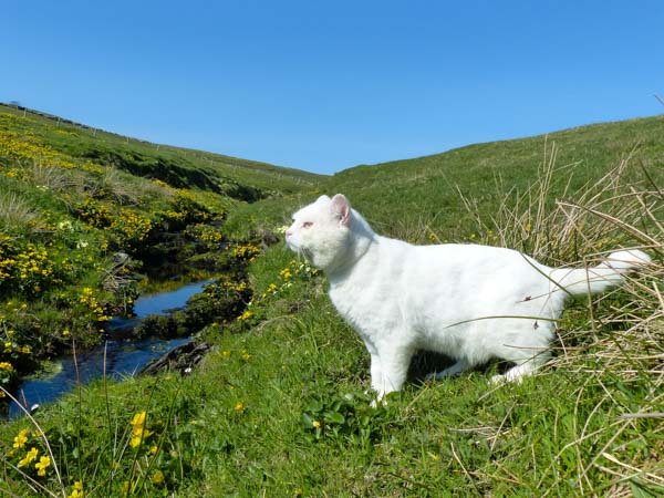 Care with monsters ears, being a white cat he is more susceptible to burn, then the dreaded sun induced skin cancer, he may need sun cream in the long sunny days on his ears, ask the vet for a suitable type.