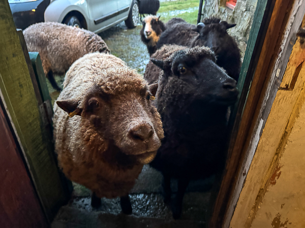 With the ducks and hens now comfortable and the sheep bedroom slightly fresher, I saw the sheep had all come home from their day out in the field.  Even Gussie and Dahlia had turned up – a routine I want them to get into.