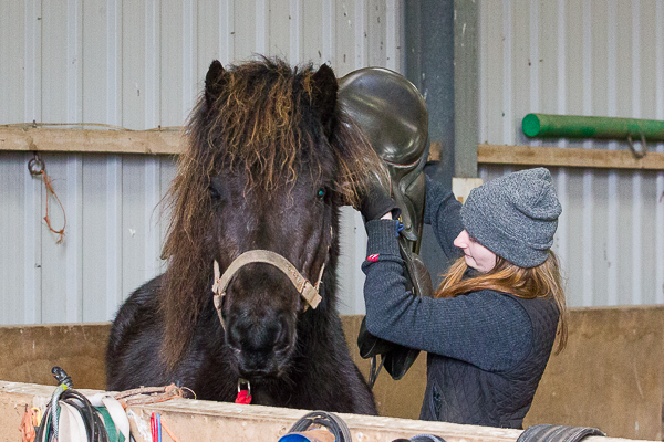 And sits up! More carrot, Daisy just sits there, Dreki does nothing. He has another carrot. Off she gets. We both say “What a good boy!”. Saddle off and we call it a day.