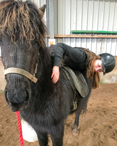 And then, when Daisy thinks it is the right time (ie safe, and Dreki is happy with what she has done), she swings her leg over.