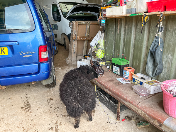 But the van defeated us all.  The sheep watched on and offered their services (“Oi, Harrel, get off the electric cable and/or out of my handbag!”)