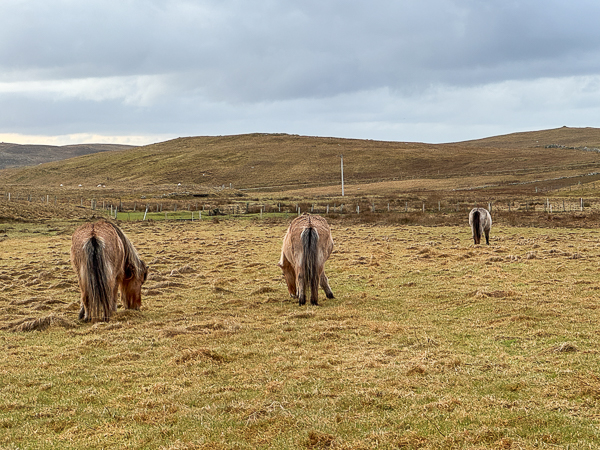 Everyone is fed up. I could tell. The fields that had grass are now almost bare. While that’s fine for younger and fatter Shetland ponies, it is not ok (apparently) for the others.