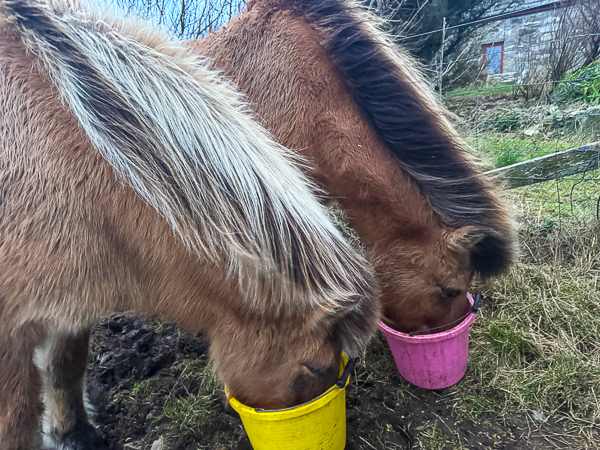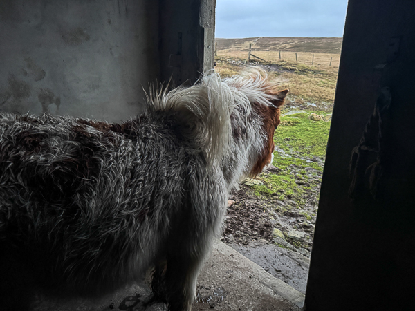 Anyway, while it was swiftly getting dark, I was getting everyone to bed (ducks/hens/sheep) and I met five pathetic Shetland ponies sheltering behind a small wall in their huge field saying they had nothing. So, having said I wasn’t opening the wee shed, I opened the wee shed and led Tiddles in so he knew it was there, and the others could watch or follow him inside.