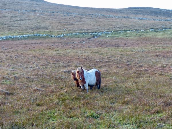 I found the Shetland herd huddling in a little dip staying out of the bitter north wind.