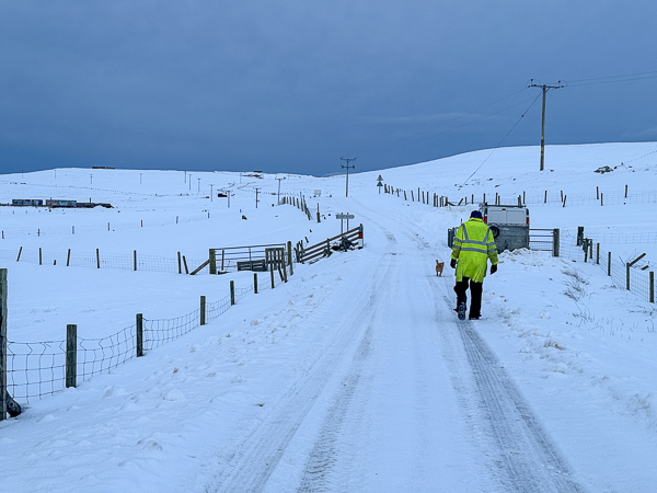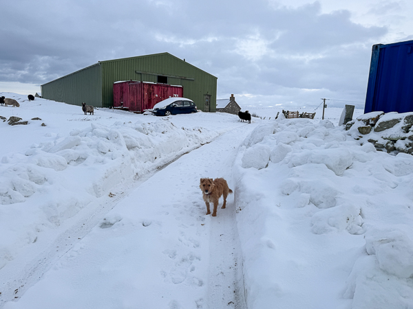 On a roll, so to speak with my back, I drove the Suzuki up our track, through some major dug out snowdrifts (well done OH) and onto the road.