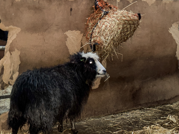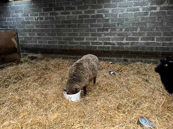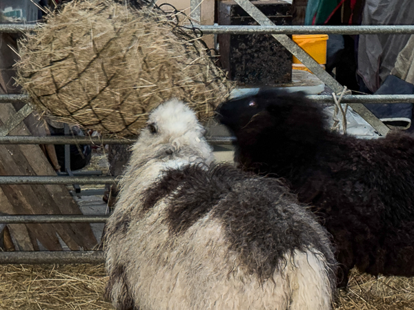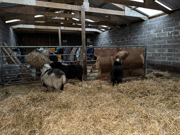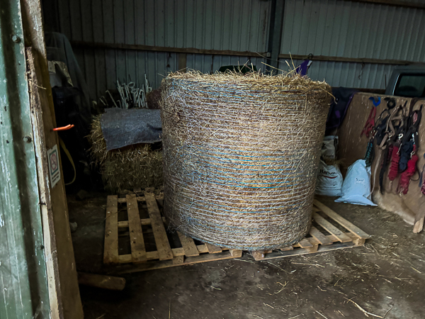 And then there are the sheep who came home tonight to a lovely new bed – four bales of straw were also delivered (2 now down) – and the horses’ old haynets to finish up.