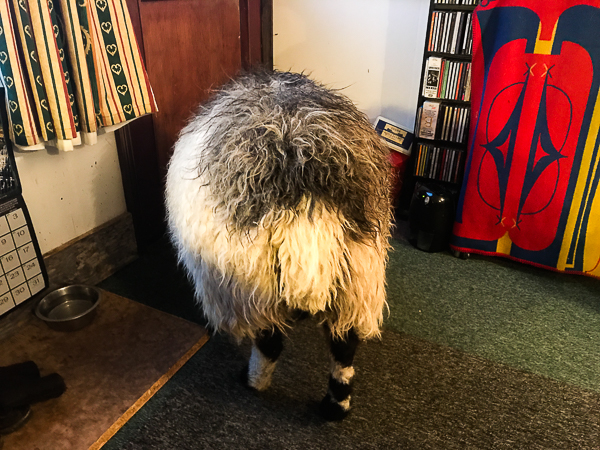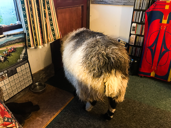 A filthy day so being a nice Mum, I let all the sheep out of their field as they hate being there when it is raining. To be fair, though, it has very little shelter and they don’t go straight to bed but generally let themselves into another field, by going through a sheep-shaped hole in the fence!