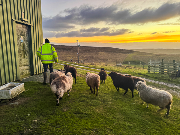 The sheep are all used to this routine and so know to follow me and my bowl of food.