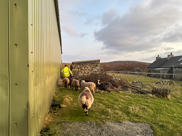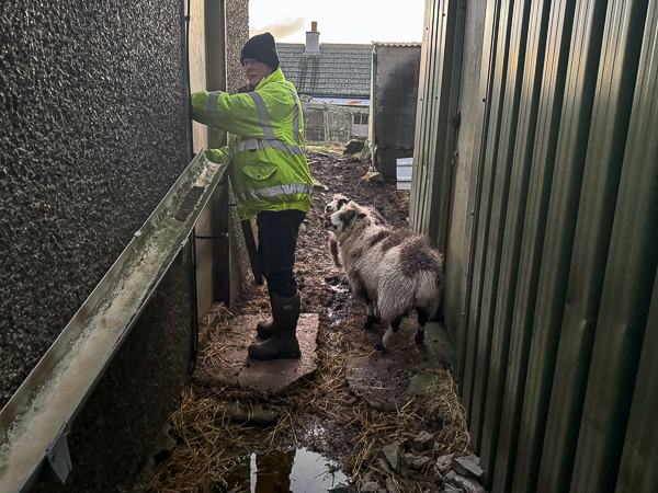 So, I rustled up the troops and, clutching my bowl of sheep food, we all walked around to their shed for breakfast.