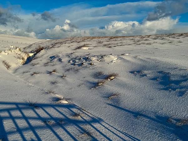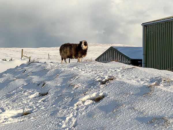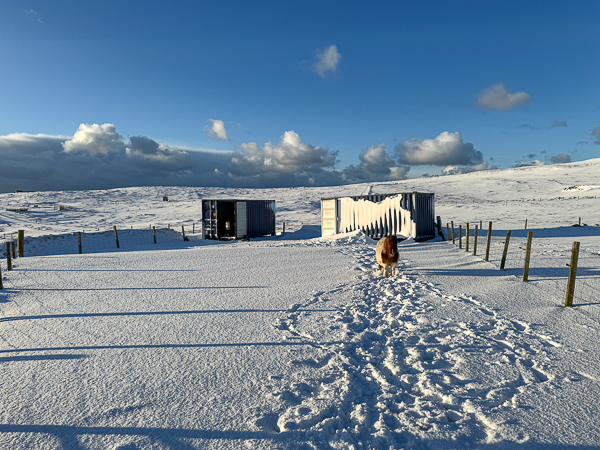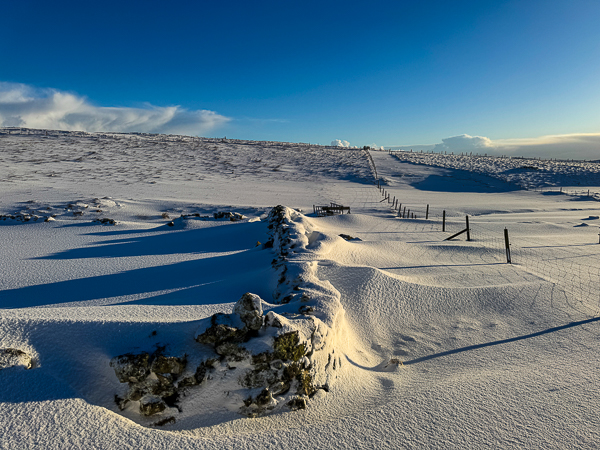 What great pictures; thank you, both! The contrast of that beautiful sky & the snow is breathtaking. It’s so good to see the four foot members of the family & ,of course, the little Livestock Manager is out in her yellow coat checking on her friends. It does look nippy,though with the drifts & all. It seems almost impossible to think that just a few months ago those gorgeous wild flowers were dotting those same fields.