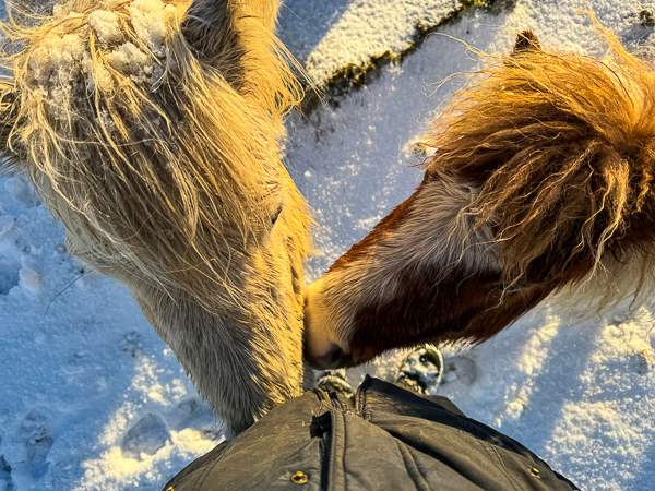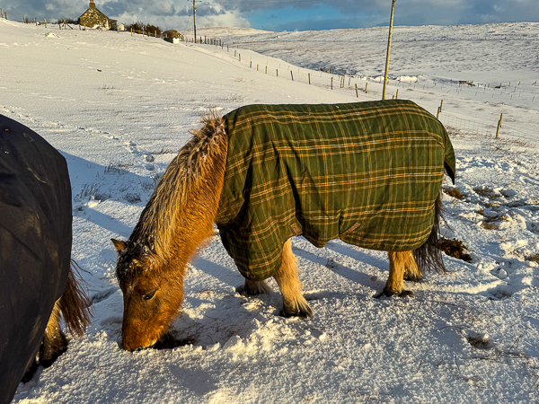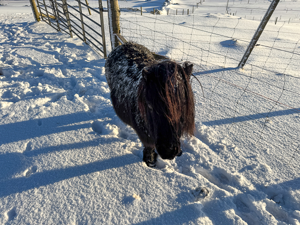 The horses and ponies have had two fields to dig for grass in. This is the stream which is completely covered over – something I have never seen before.