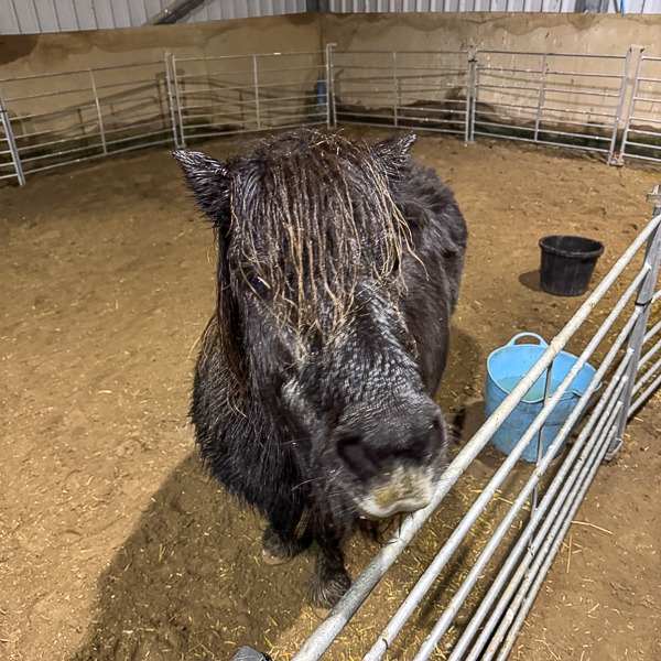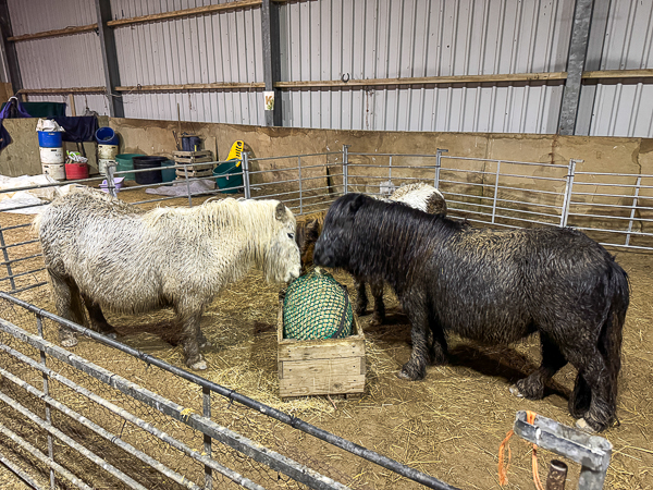 Floss did, however, get to the Shetland ponies and they ate their food quickly and left to huddle somewhere.