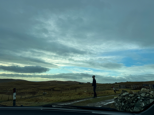 We drove home past the wind turbines that rarely turn but are a blight on the Shetland hills.