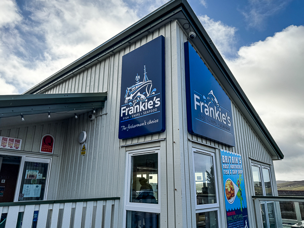 So, we made a plan, which meant that Floss and I had to first clear the car out of all the recently bought animal feed, etc. I drove (because i am a control freak) and we went to Brae, on the other side of the island – to Frankie’s Fish & Chips for a proper Sunday lunch.