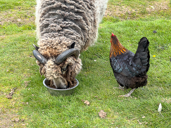 The sheep are fed in the morning in their shed with the door shut so they are in a routine where I can catch whoever and do stuff if I need to. Shearing will be soon so I try and keep this going all year round. There is nothing worse than unhelpful sheep.
